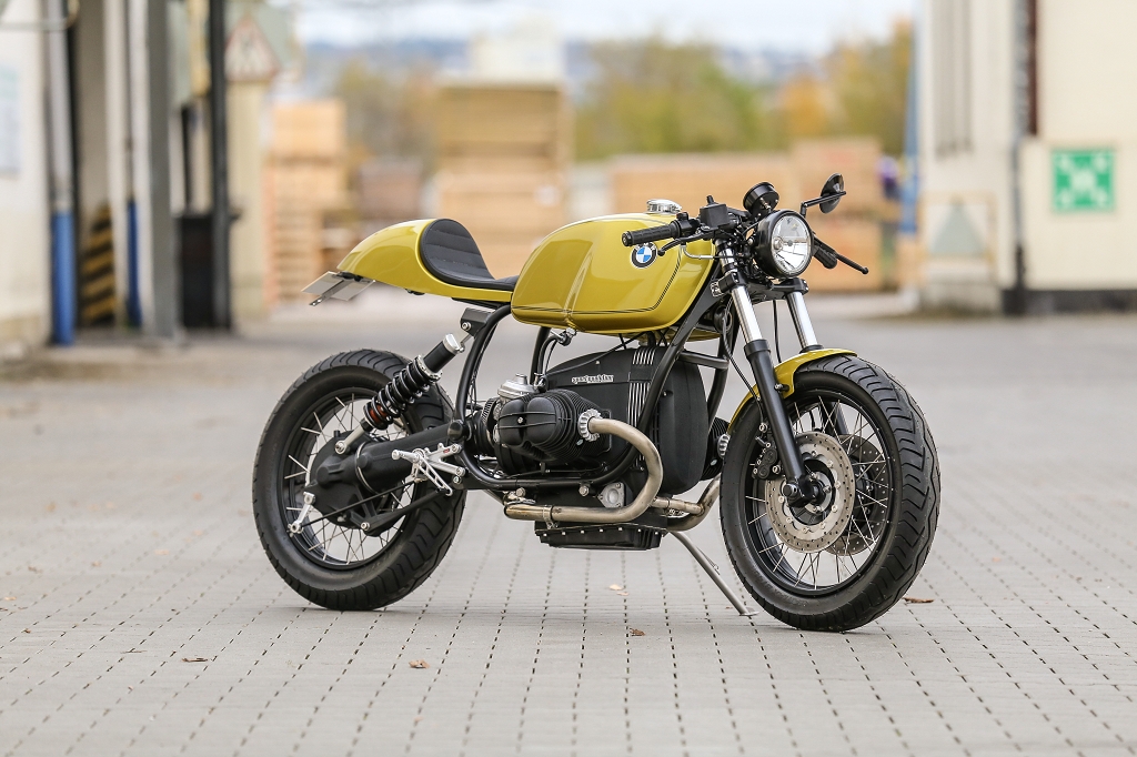 Eine BMW R100R Paralever wird vom biederen Allrounder zum verschärften BMW Cafe Racer Umbau. Das Bike wurde für einen berühmten Kunden als Sonderedition nach seinen Vorgaben gebaut.