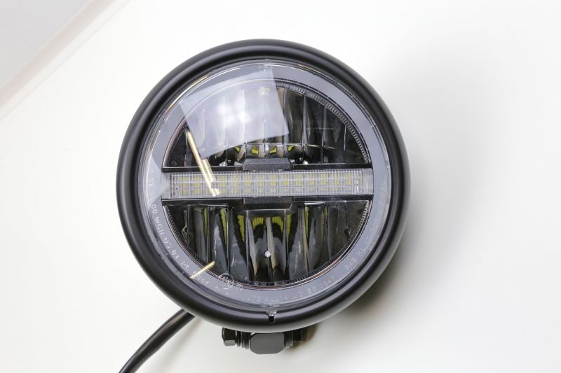 Startseite » Umbauteile » BMW Zweiventiler Teile ALLES » Alles für die Beleuchtung » LED-Scheinwerfer Pecos 5 3/4 Zoll mit TFL, schwarz matt, Befestigung unten
