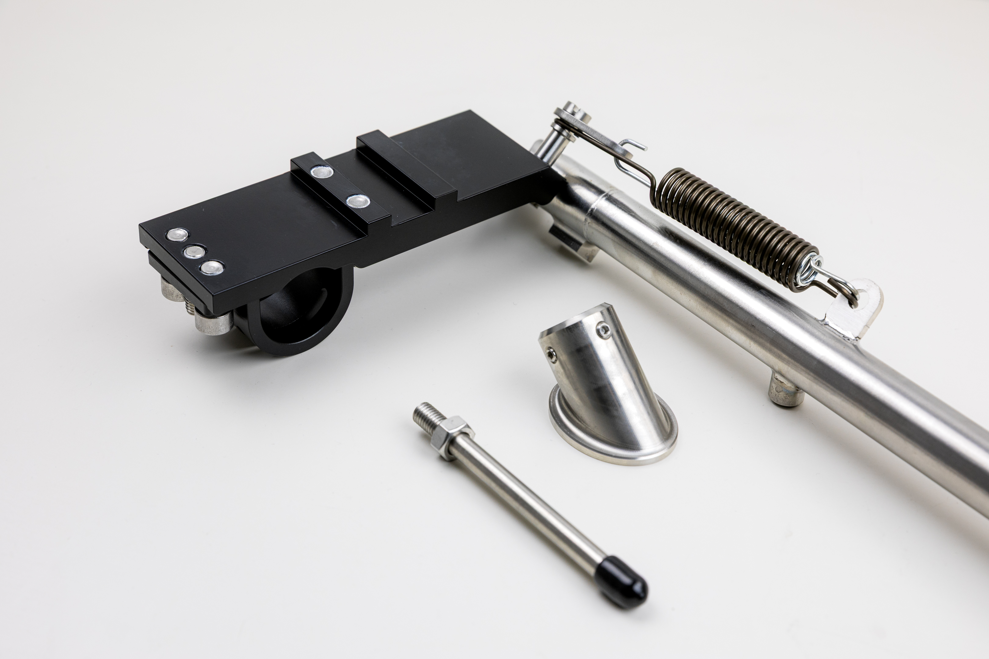 Thanks to its clever positioning, it enables the use of shorter exhaust systems and increases ground clearance for bobber conversions. Premature touchdowns on left-hand bends are now a thing of the past. It is the perfect alternative for Paralever models where the original stand is no longer required due to the removal of the crash bars.