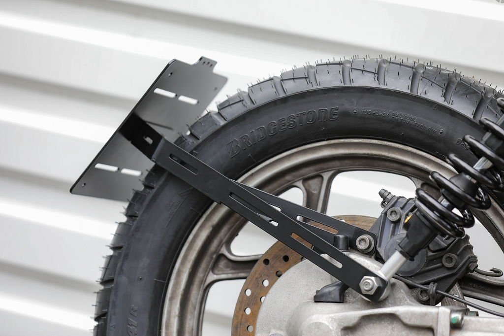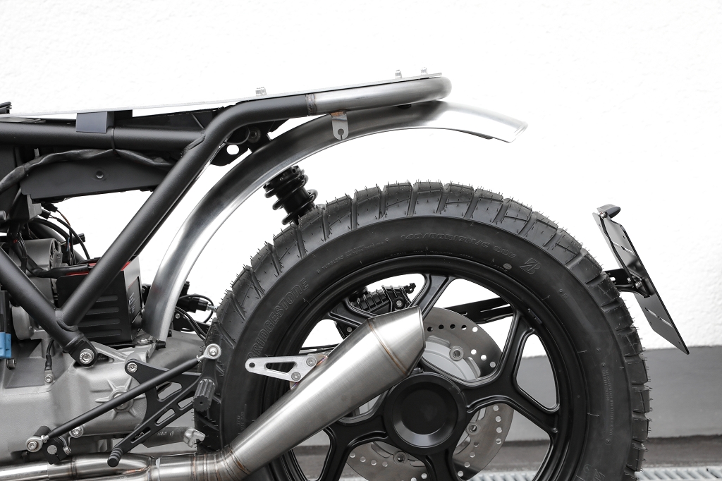 High-quality, stainless steel licence plate holder attached to the final drive, black powder-coated. The bracket is 100% TÜV-compliant and a TÜV parts certificate in accordance with section 19.3 is included.